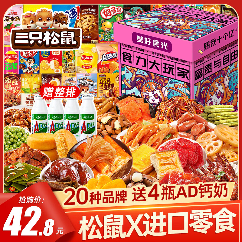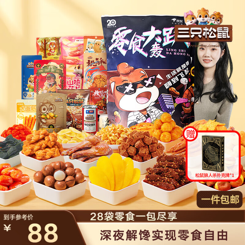 三只松鼠轰趴零食大礼包28袋2411g辣条肉脯休闲巨型送女友礼物送礼