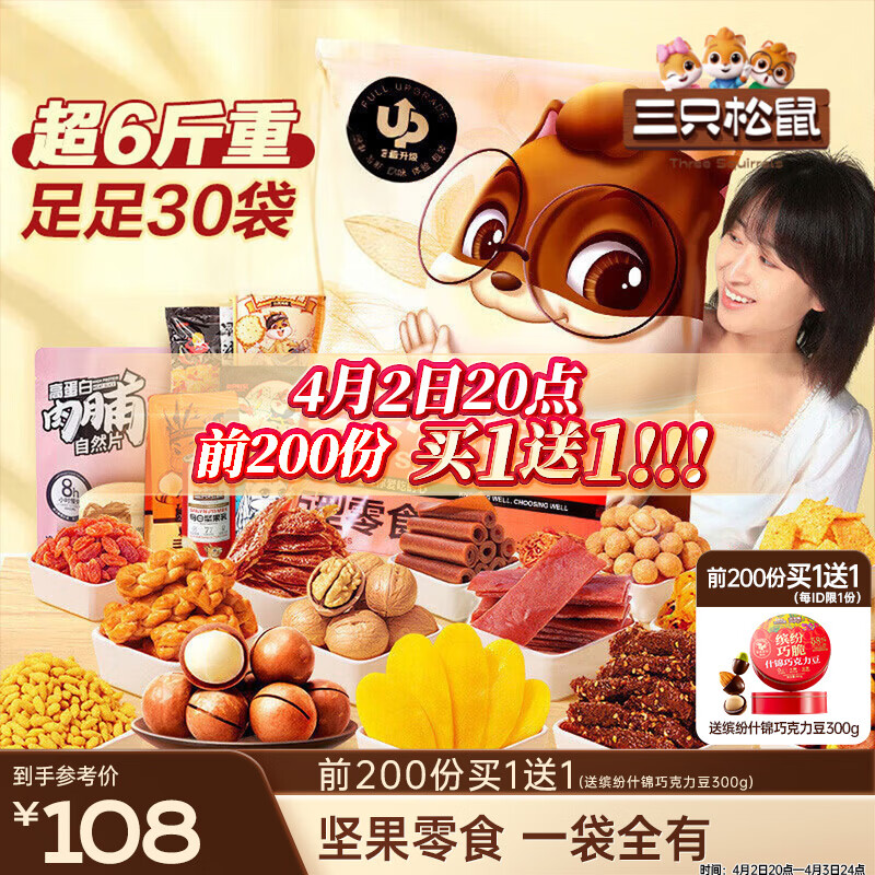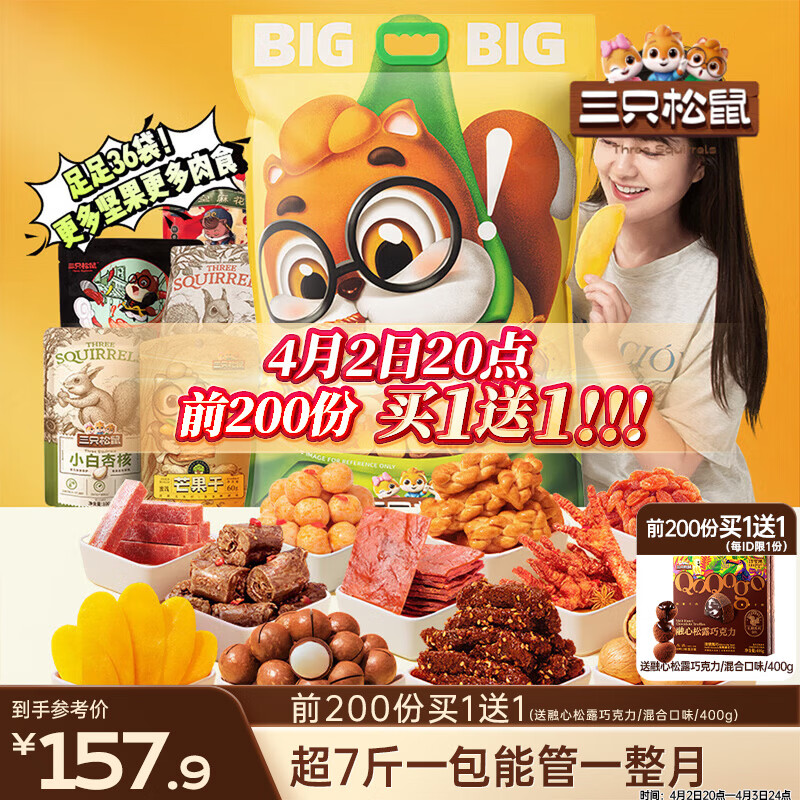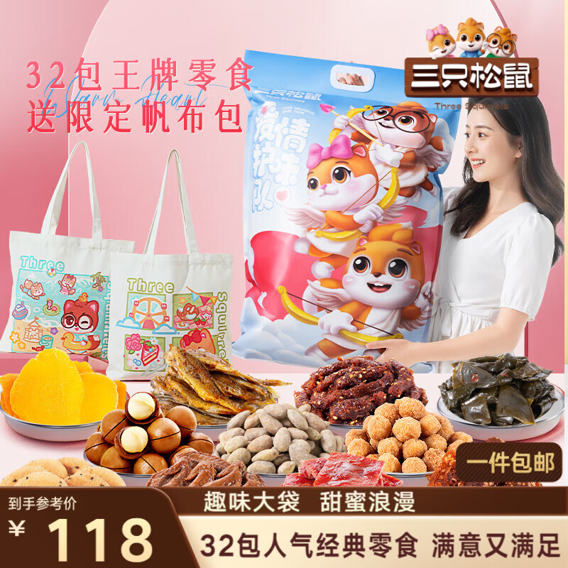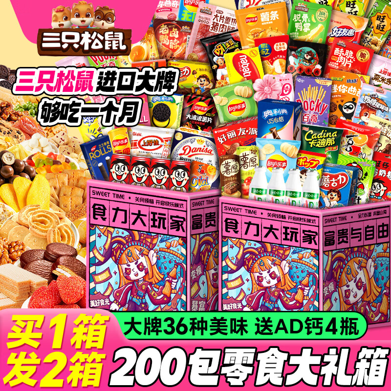 三只松鼠儿童零食大礼包送女朋友生日礼物整箱成人解馋小零食2000g共140包