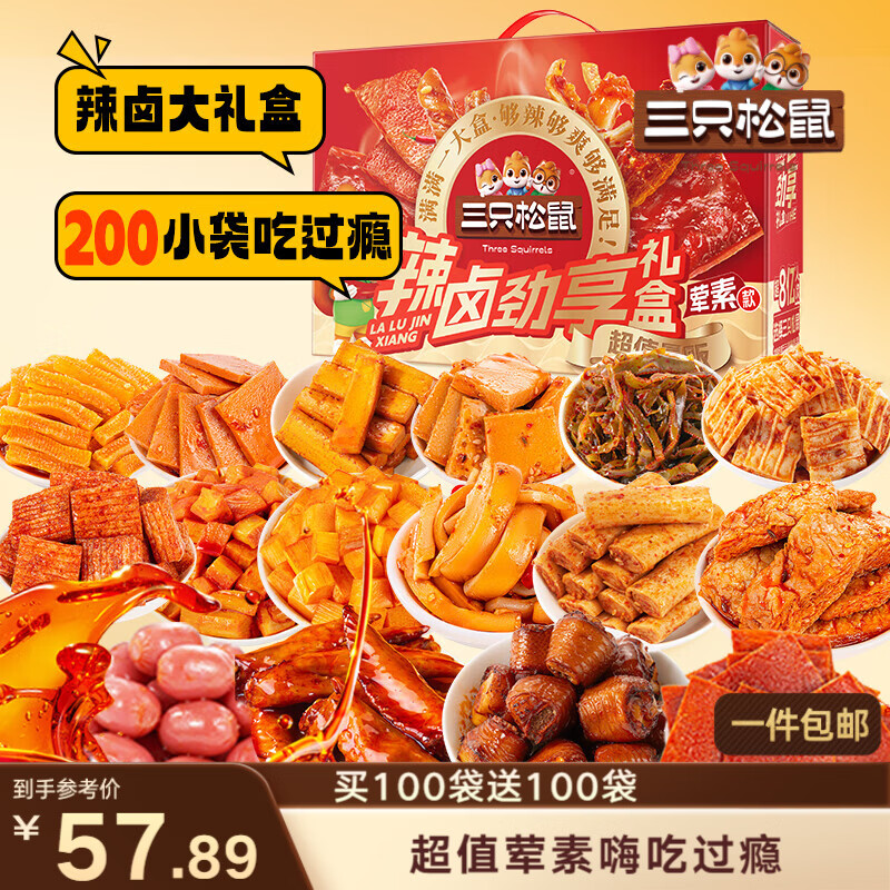 三只松鼠辣卤畅爽礼200包 零食大礼包团购解馋豆干魔芋多肉新年送礼1545g