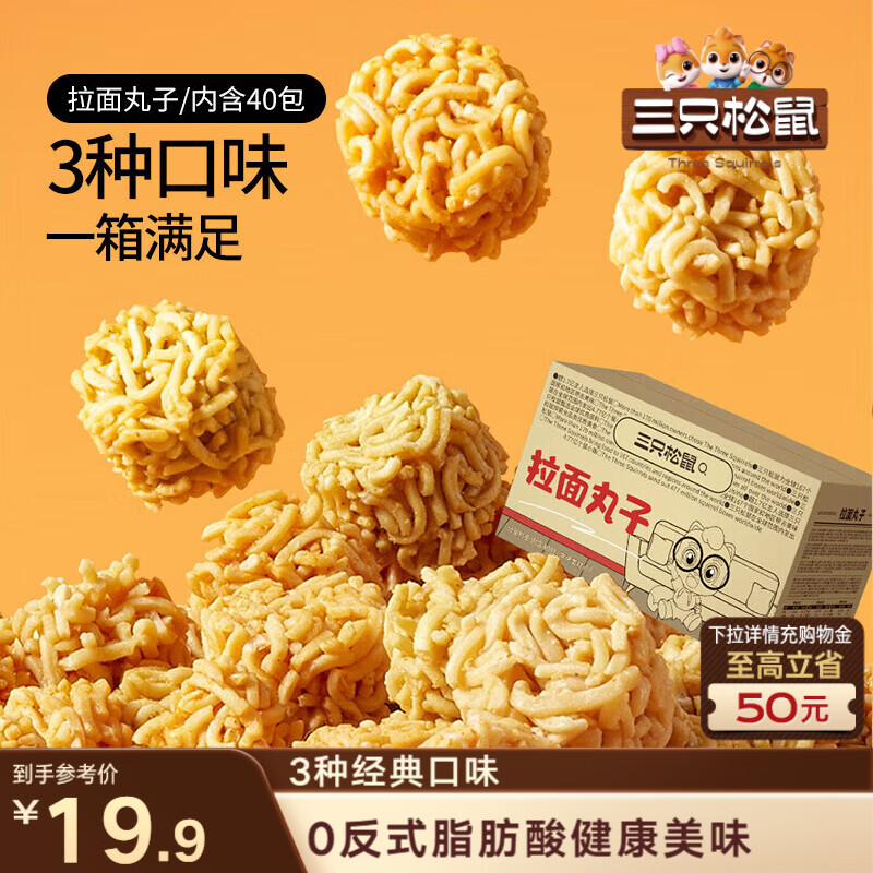 三只松鼠拉面丸子800g/40包箱装干脆面休闲零食大礼包膨化食品网红小吃