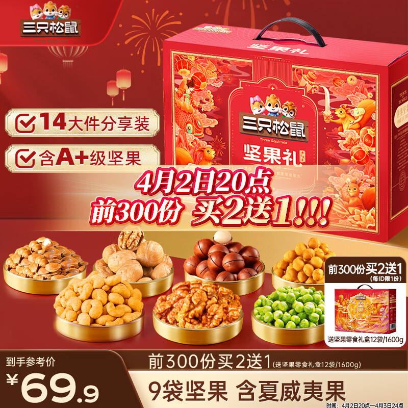 三只松鼠坚果零食礼盒1600g/12件零食大礼包送礼夏威夷果核桃企业团购