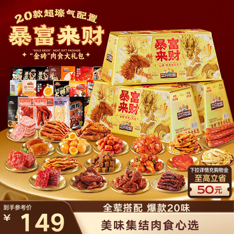 三只松鼠暴富来财肉食礼盒1901g辣卤休闲零食牛肉干猪肉脯零食大礼包混发