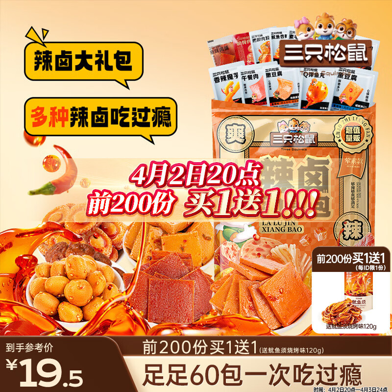 三只松鼠辣卤礼包乐享款60包 辣条魔芋爽豆干卤味解馋休闲零食大礼包440g