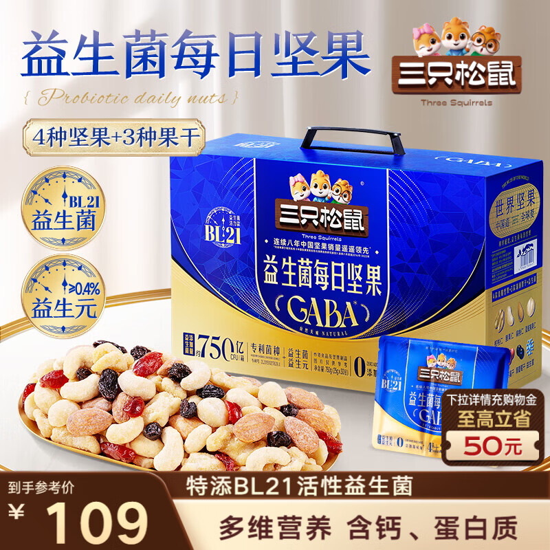 三只松鼠益生菌每日坚果750g/30袋 坚果大礼包零食开心果腰果团购送礼