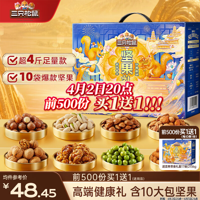 三只松鼠坚果零食礼盒2136g/17件零食大礼包干果夏威夷果开心果团购送礼