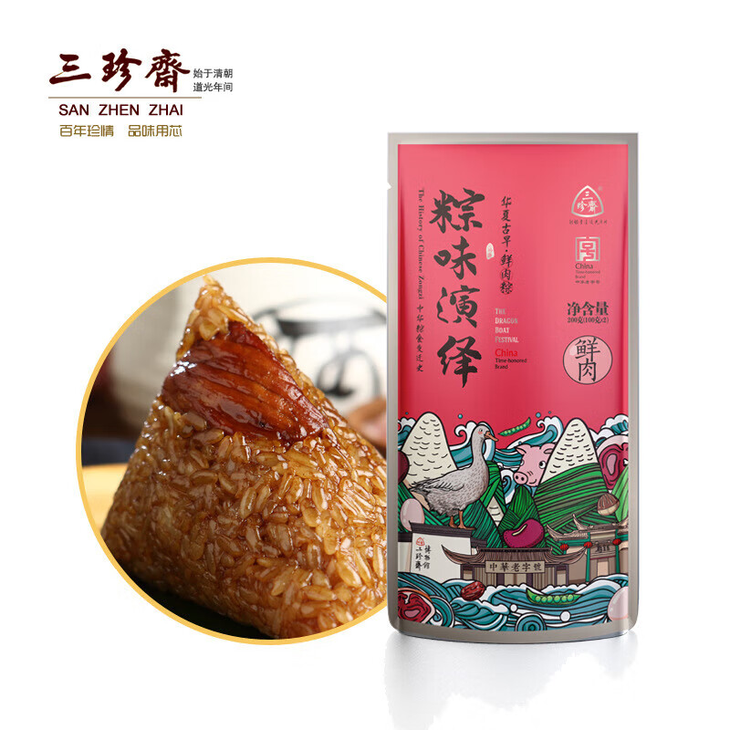 三珍斋手工粽子鲜肉粽嘉兴特产真空包装礼品散粽 鲜肉粽(100g*2)