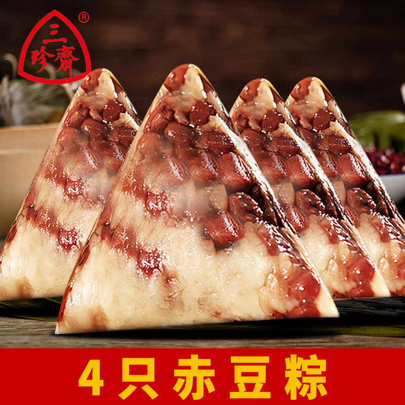 三珍斋赤豆粽新鲜甜粽袋装端午节嘉兴粽子真空加热早餐点心 4只赤豆粽