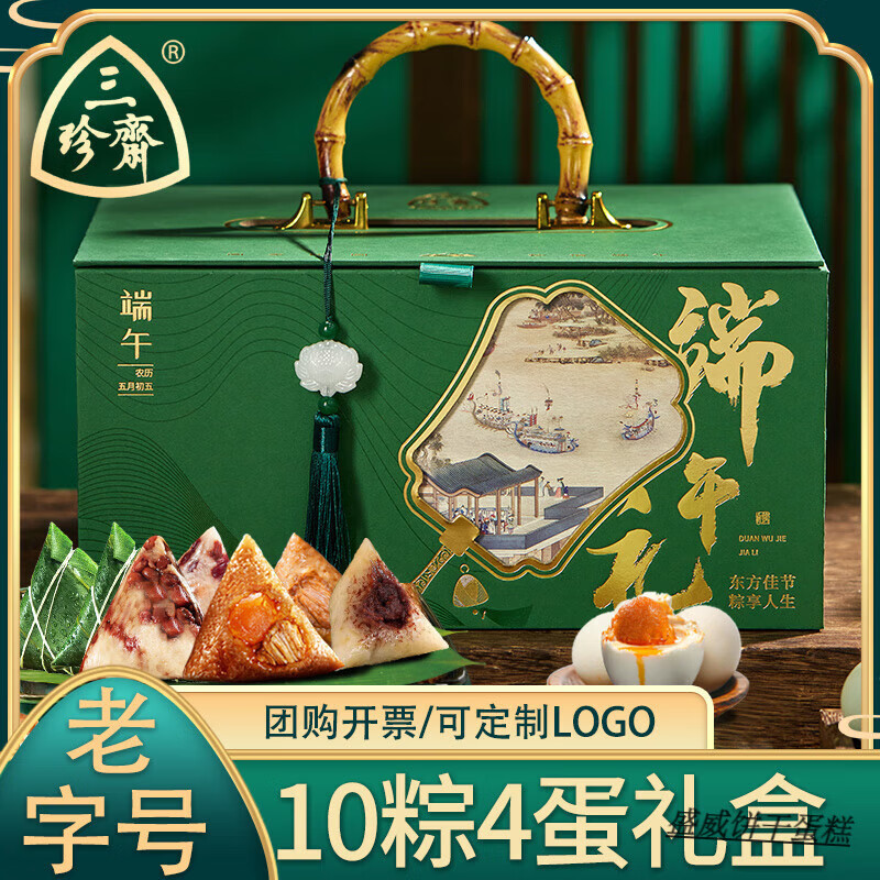 三珍斋端午节粽子礼盒装嘉兴蛋黄肉粽送长辈员工礼品团购定制 A经典竹篮:6粽4蛋礼盒