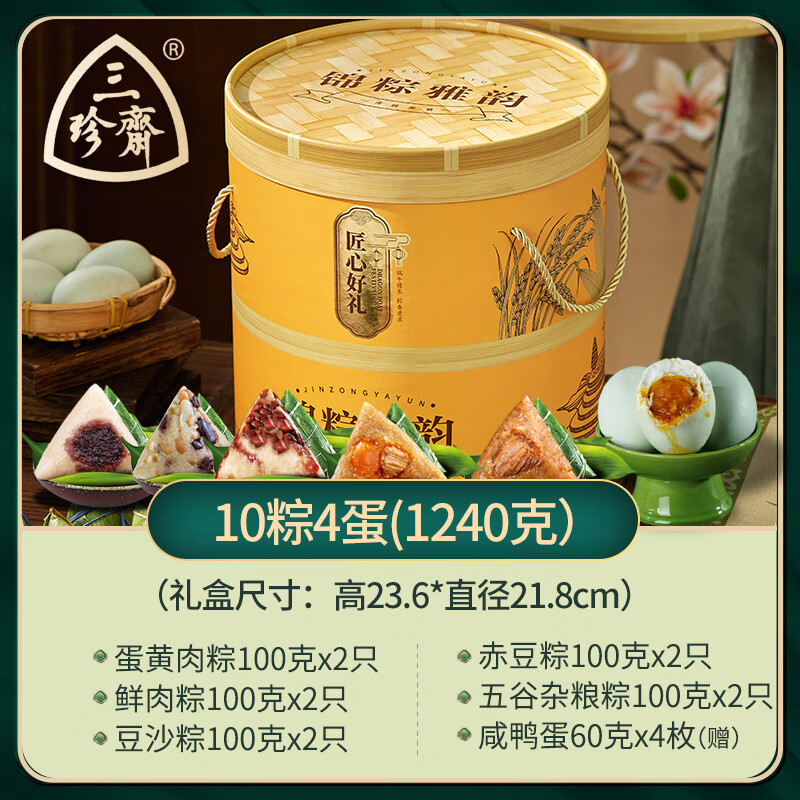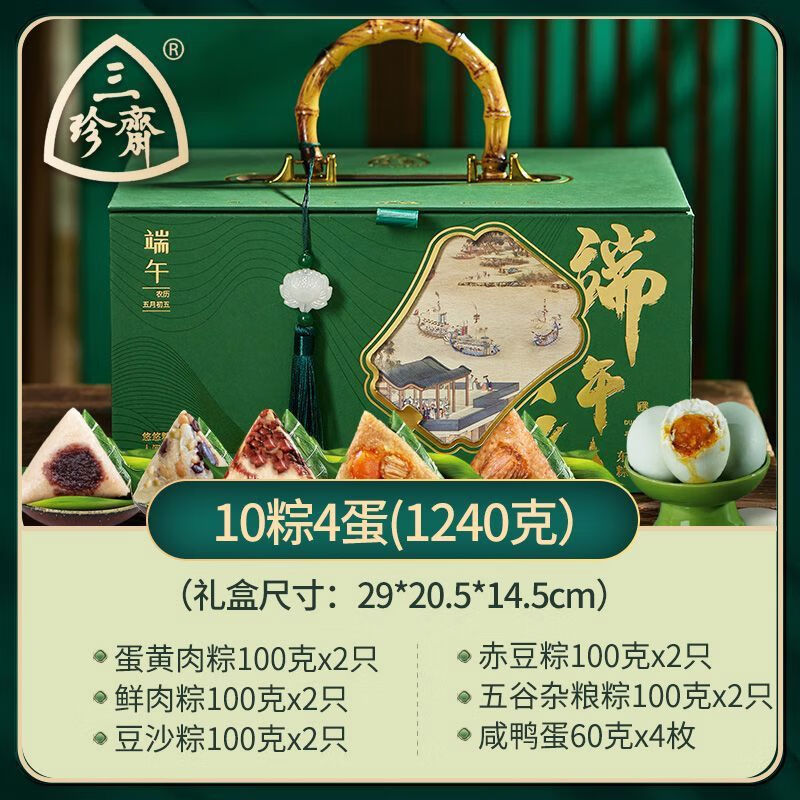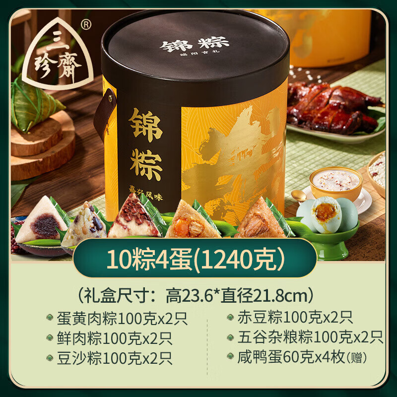内廷上用超市三珍斋正宗的嘉兴粽子礼盒装肉粽甜粽端午节送礼公司团购 锦粽10粽4蛋礼盒 礼盒送长辈见家长非五芳斋三全
