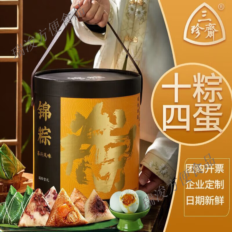三珍斋嘉兴粽子礼盒装蛋黄鲜肉粽端午企业定 锦粽:10粽4蛋礼盒