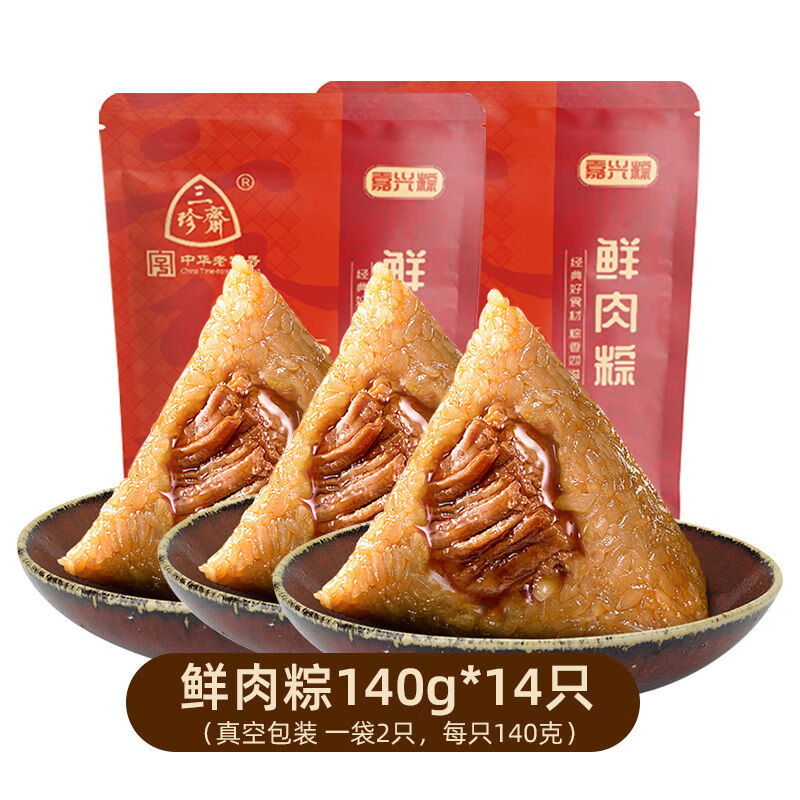 三珍斋粽子鲜肉粽子蛋黄肉粽豆沙甜粽散装嘉兴特产端午节礼盒送礼 真空彩袋肉粽140g*14只
