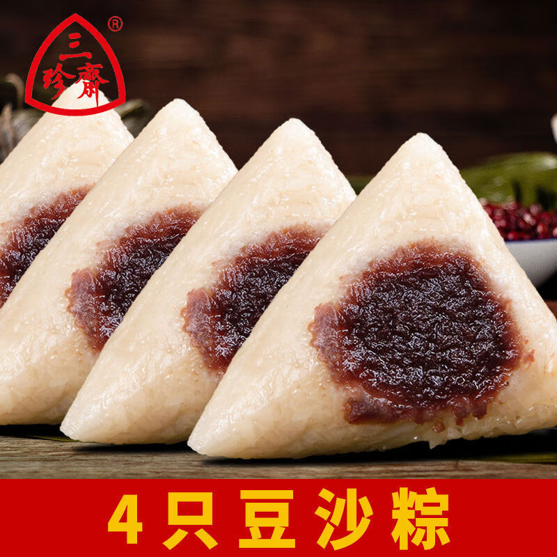 三珍斋正宗嘉兴粽子豆沙粽真空包装甜粽端午嘉兴特产早餐速食 4只豆沙粽