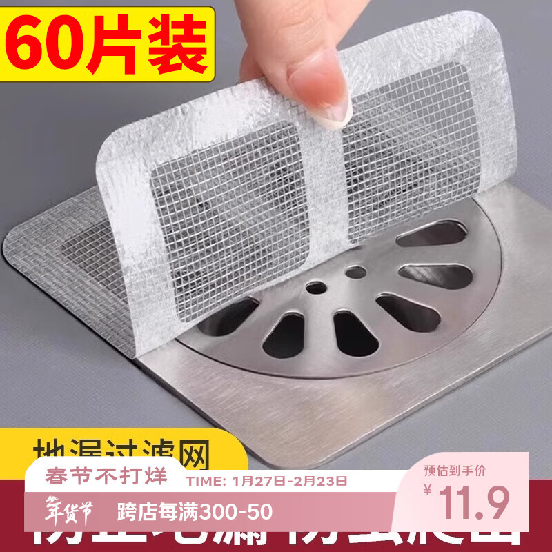 洁比世地漏过滤网60片下水道地漏贴一次性网罩浴室防毛发防虫防臭神器
