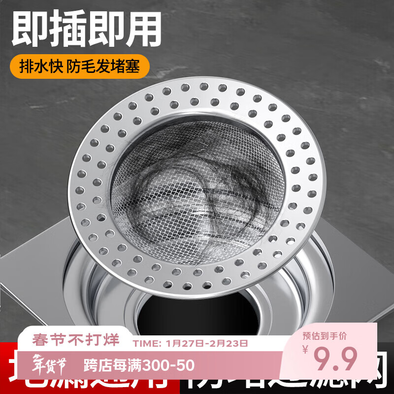 洁比世地漏盖卫生间浴室头发垃圾下水道封口器不锈钢过滤网防虫防堵神器