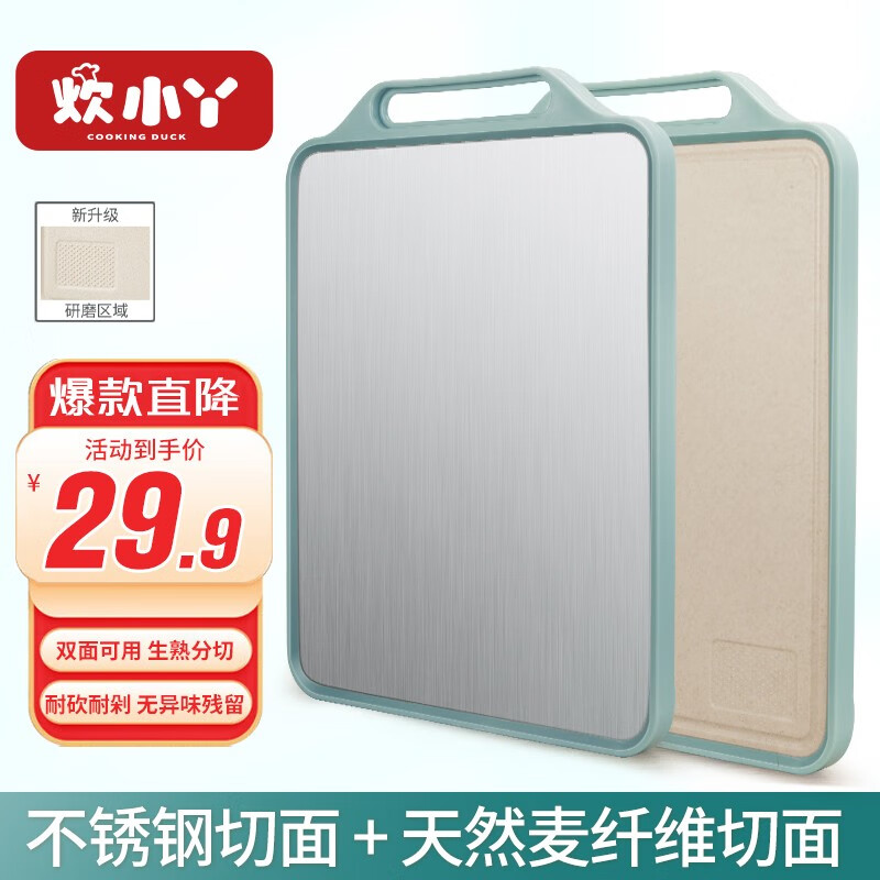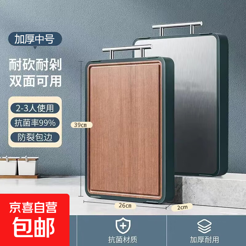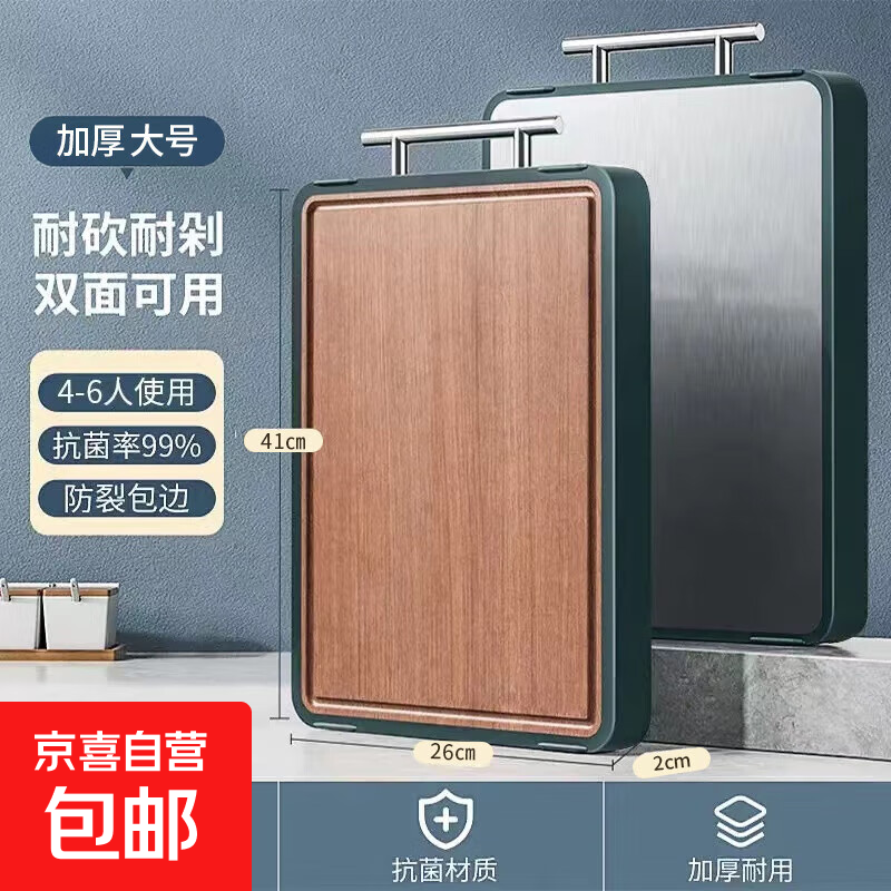 炊小丫(CHUIXIAOYA)双面抗菌砧板不锈钢抗剁切菜板家用擀面案板加大加厚防霉防滑菜板 抗剁防霉抑菌双面菜板