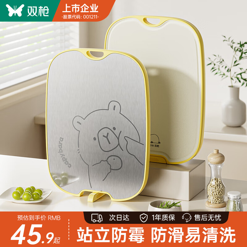 双枪切菜板 食品级抗菌防霉水果砧案板家用不锈钢双面辅食菜板大号