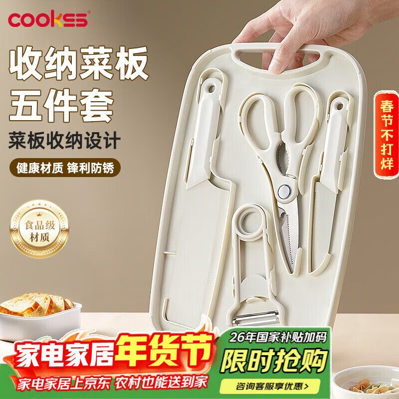 COOKSS辅食菜板刀具全套宝宝婴幼儿不锈钢剪刀水果刀瓜果刨儿童料理工具