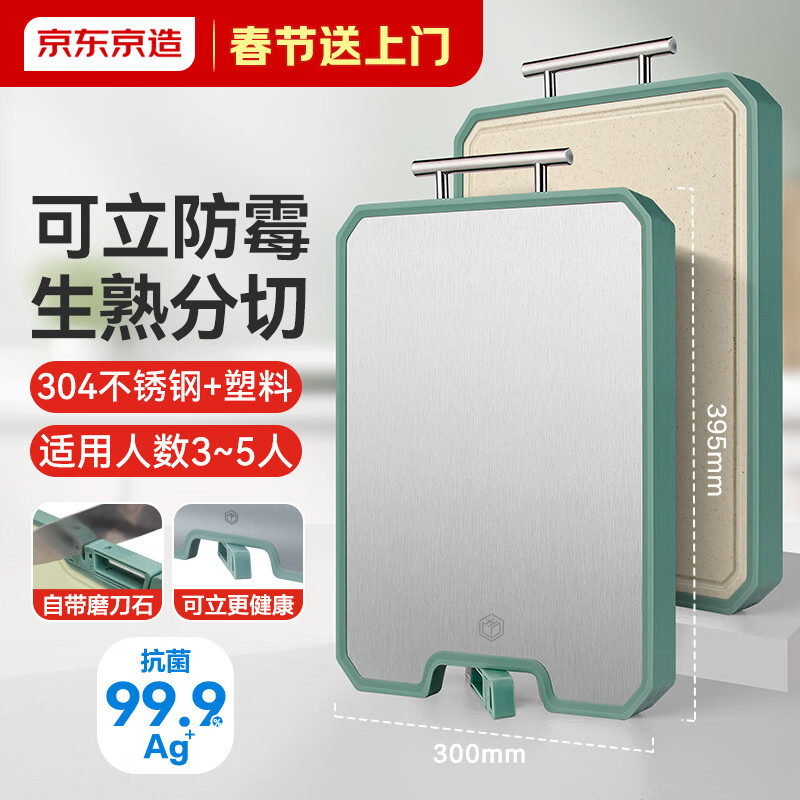 京东京造 菜板 304不锈钢砧案PP板切菜家用【抗菌防霉】39.5*30*1.7cm