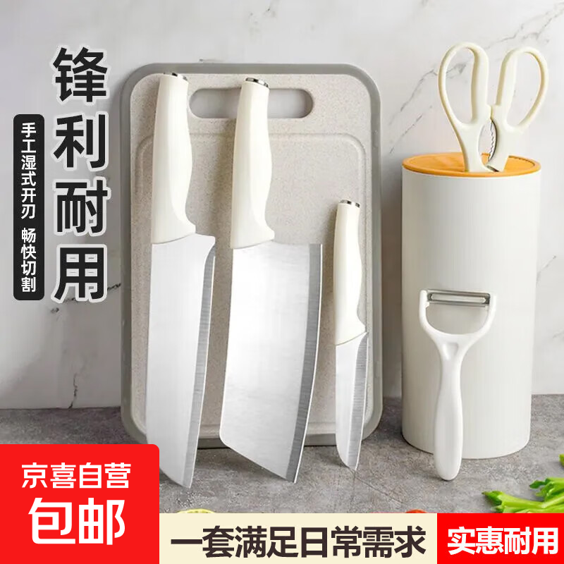 白象厨房家用菜刀全套装锋利切片刀菜板二合一宿舍不锈钢组合刀具 7件-3刀+菜板+刨+剪刀+刀座