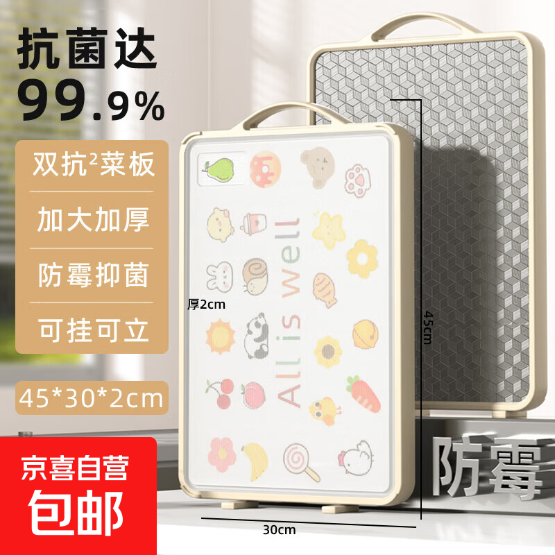 菜板家用抗菌防霉砧板双面粘板厨房专用不锈钢切菜板水果刀板案板 可立双面菜板(46*30*2cm)