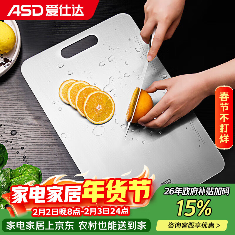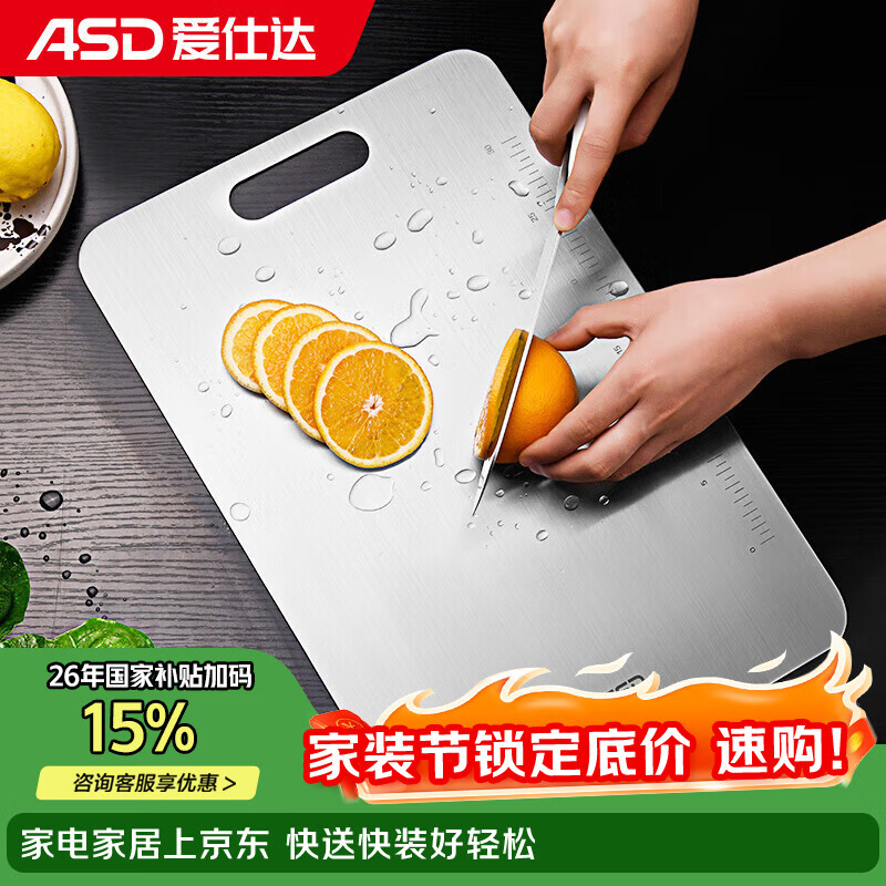 爱仕达(ASD)菜板 304不锈钢抗菌防霉大砧板切菜板水果板饺子板GJ30C1WG大号