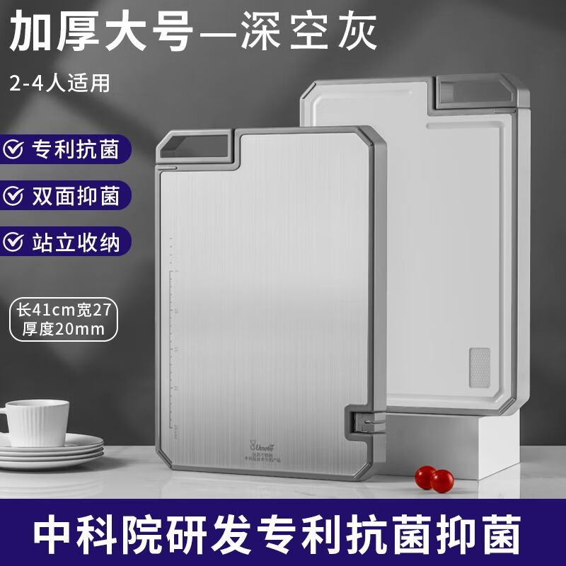 语森忆Umetre德国304不锈钢切菜板家用抗菌防霉砧板厚厨房塑料双面案板 深空灰中科院抗菌专利(可立可磨刀)