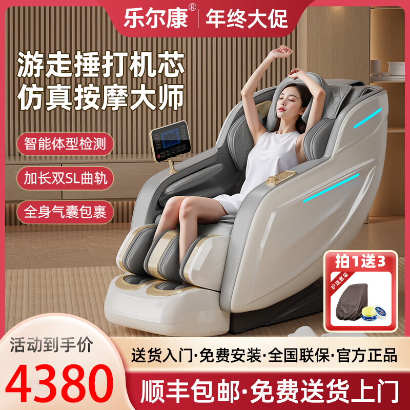 乐尔康(Le er kang)按摩椅家用全身小型电动多功能全自动按摩老人沙发太空舱 乐尔康【免安装】送货入户 米灰-4D玉石机芯-AI声控-SL加长导轨