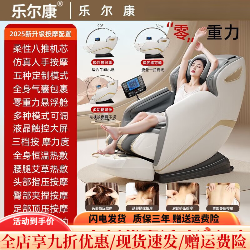 乐尔康(Le er kang)新款小型按摩椅家用全身多功能太空舱豪华老人沙发椅 顶配米灰/玉石机芯/足底揉捏/气 顺丰优先送货上门免安装全国联