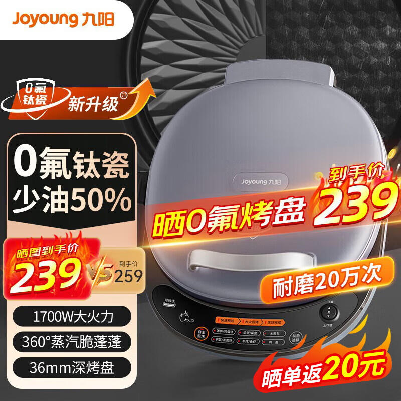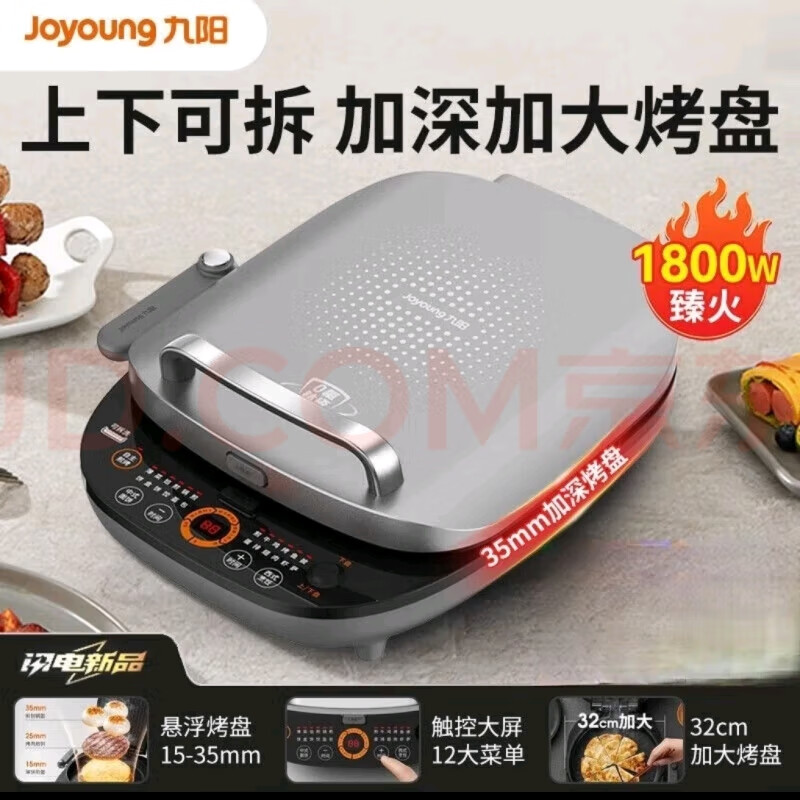 九阳电饼铛0氟钛瓷不粘早餐机家用多功能煎烤机上下独立控温烤盘可拆洗烙饼机 【上下烤盘可拆/直32CM/盘深35MM】太空银