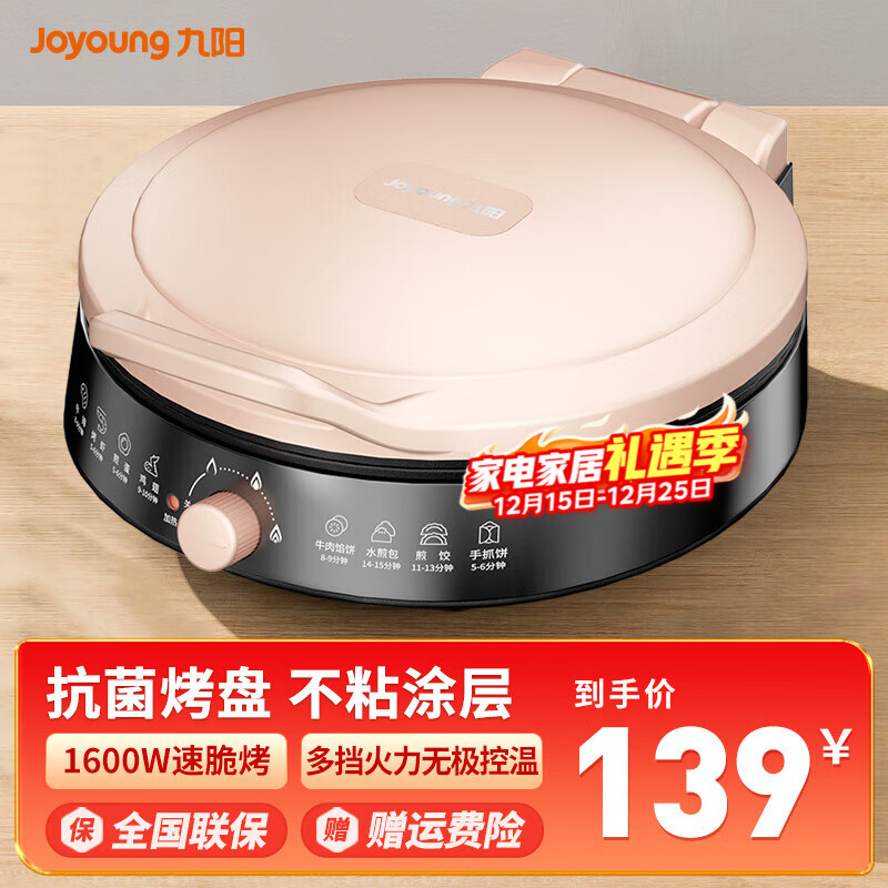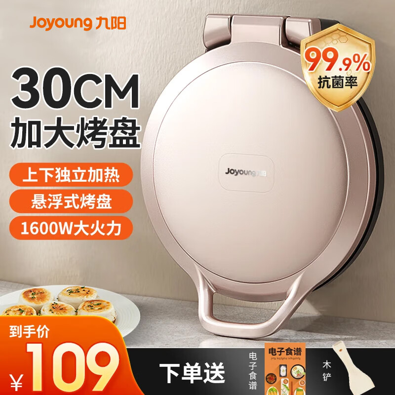 九阳电饼铛家用电饼档加深加大尺寸烤盘煎饼锅双面加热烙饼锅独立温控饼锅高颜值悬浮式煎烤机 健康烤盘