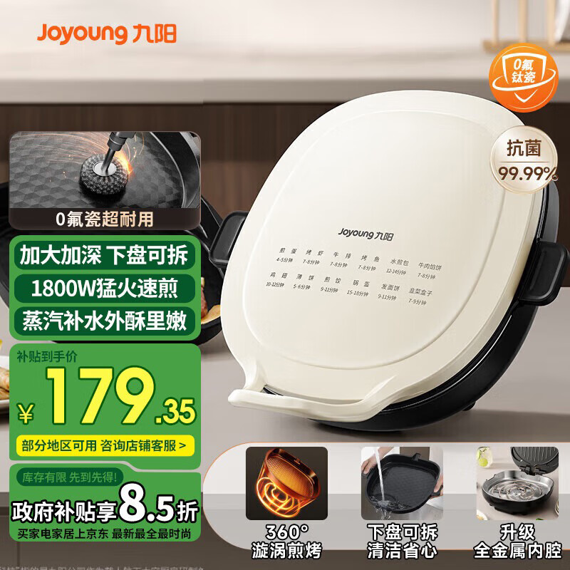 九阳电饼铛家用双面加热可拆洗煎饼机不粘烙饼锅加大加深钛瓷电饼档煎饼锅电饼铛烙饼锅加大加深烙饼 奶油白
