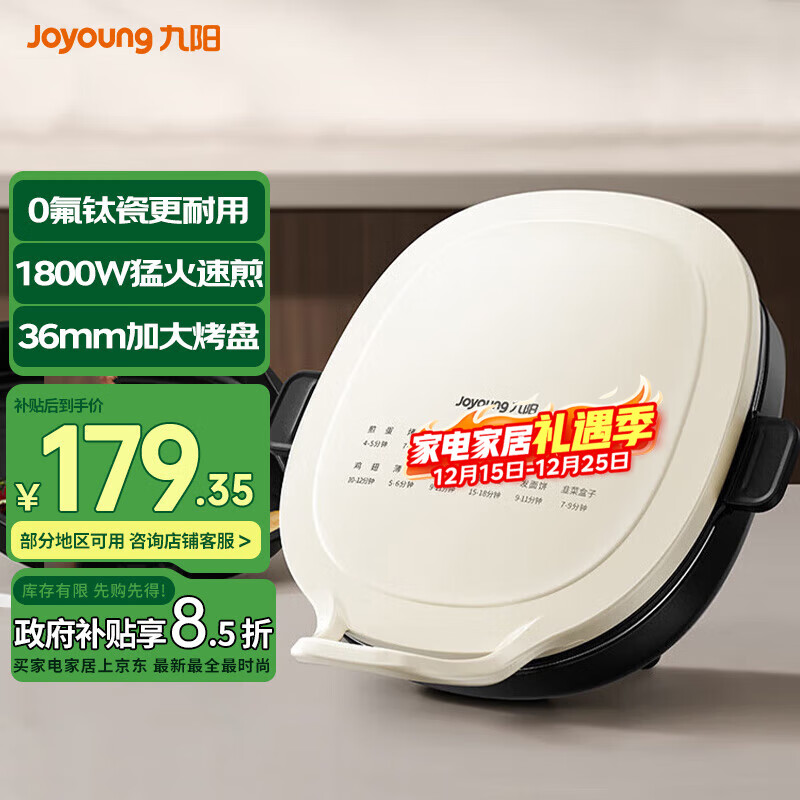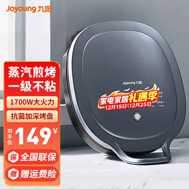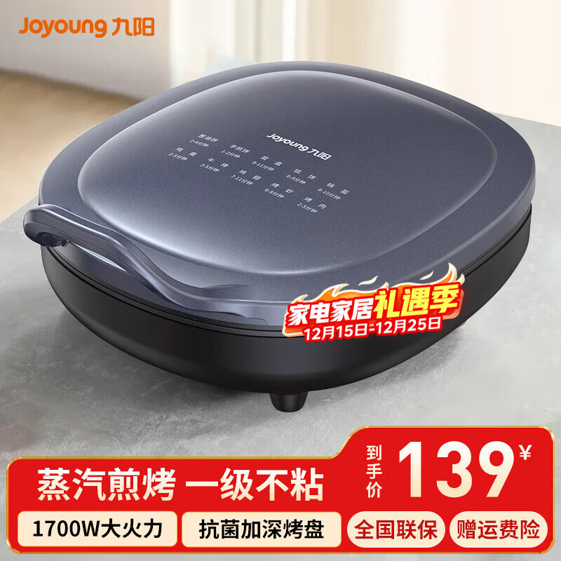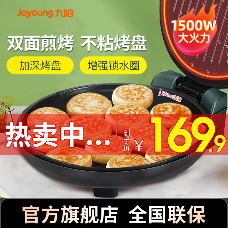 九阳电饼铛家用0氟耐磨36mm深烤盘可拆烙饼锅双面加热多功能烤肉锅电煎锅不粘煎饼锅2200W猛火政府补贴 蒸汽补水