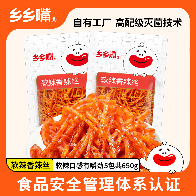 乡乡嘴软辣香辣丝辣条休闲零食怀旧小吃柯淳130g*5包