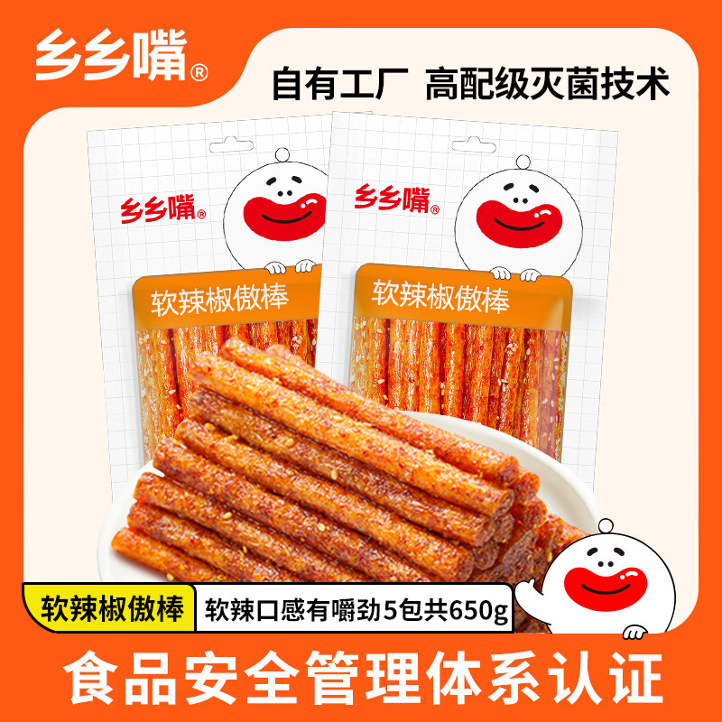 乡乡嘴软辣椒傲棒辣条休闲零食怀旧小吃130g*5包