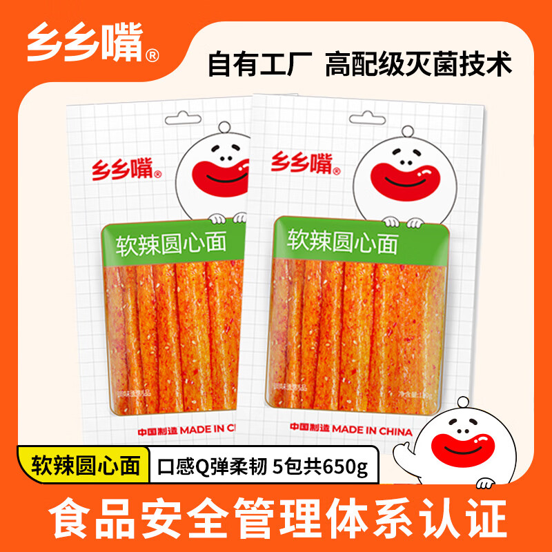 乡乡嘴软辣圆心面辣条休闲零食怀旧小吃柯淳130g*5包