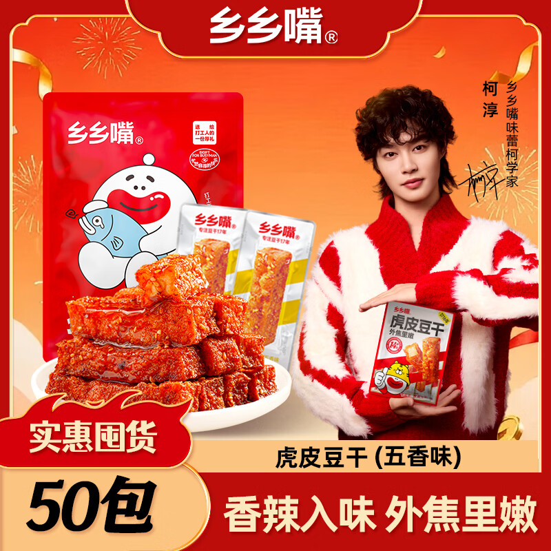 乡乡嘴虎皮豆干辣条香干子特产下酒菜休闲零食素食小吃五香柯淳13gX50包