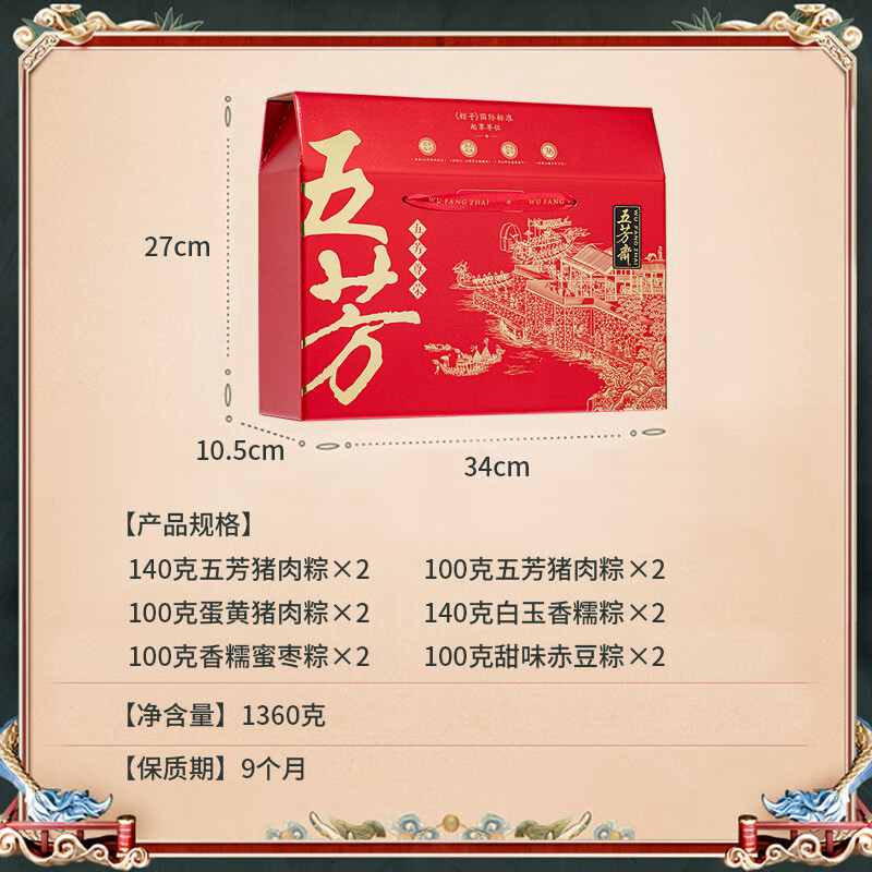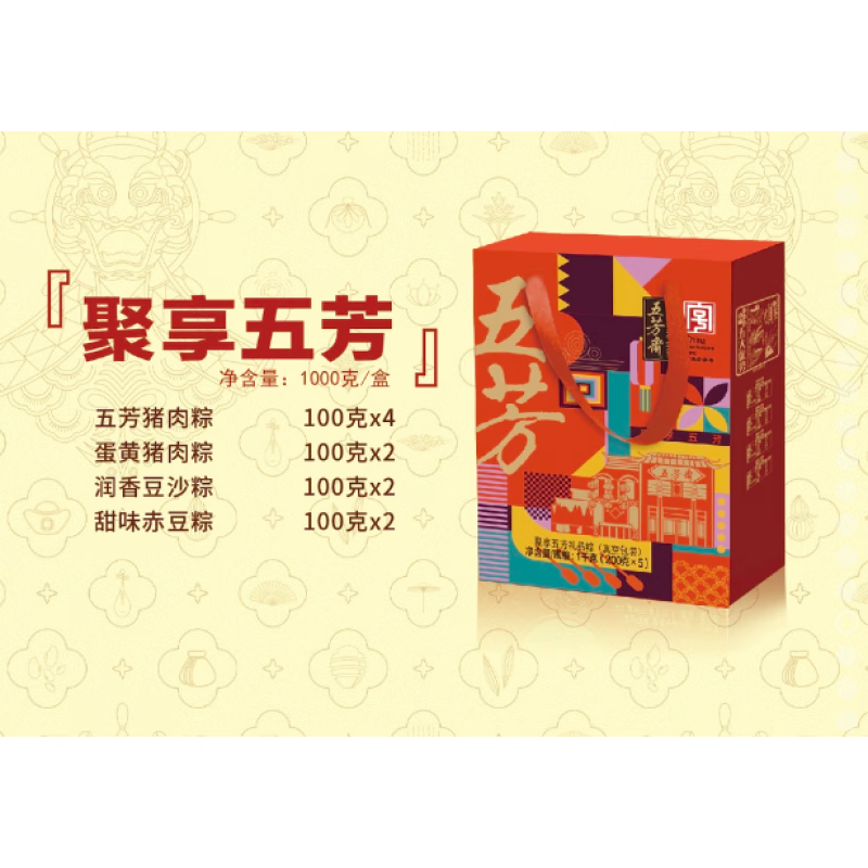 五芳斋 五芳发发粽子礼盒1kg 10粽5口味 端午节量贩礼盒装大肉粽 五方發發礼盒1kg