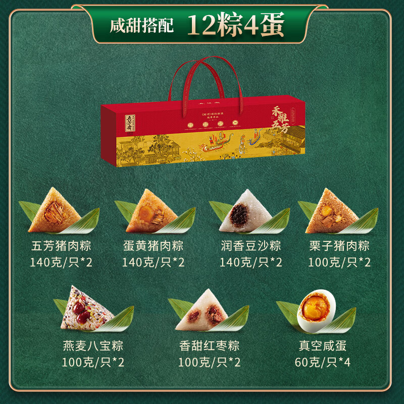 五芳斋粽子礼盒禾雅五芳1680克12粽4蛋组合端午节礼品嘉兴粽子