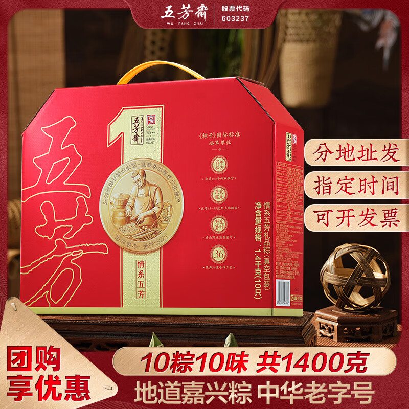 五芳斋粽子礼盒 嘉兴特产粽子 端午节礼盒礼品棕子 中华老字号 团购送礼 【10粽10味】情系五芳礼盒1400克