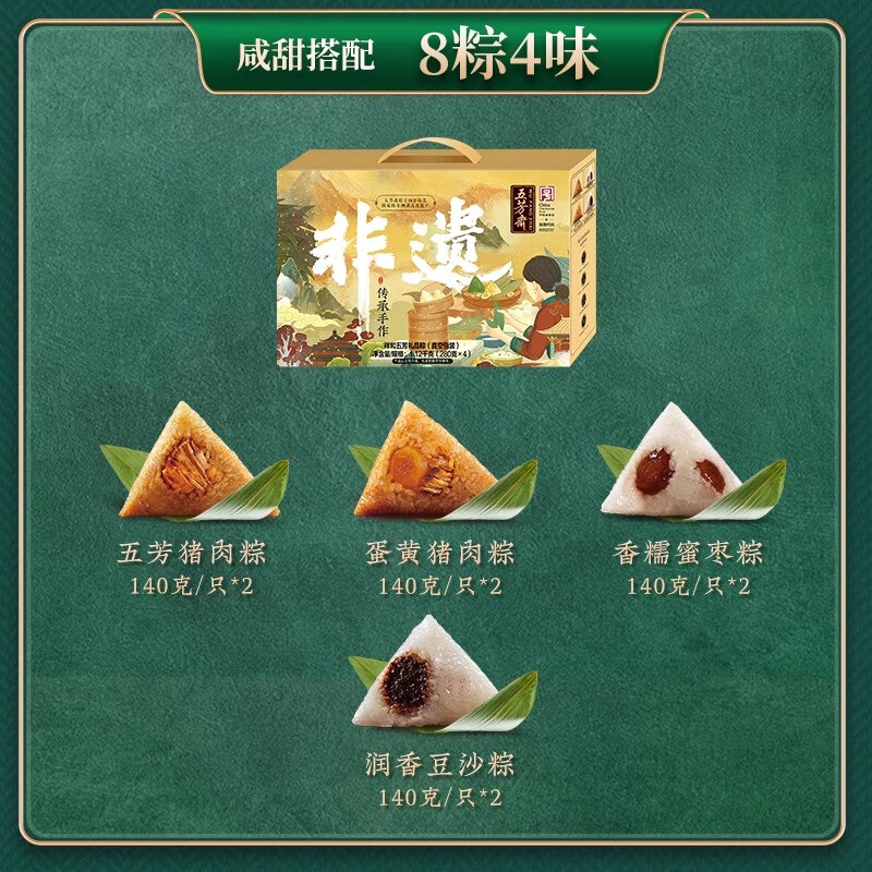五芳斋 粽子礼盒 中华老字号蛋黄豆沙咸甜肉粽子嘉兴端午节礼品嘉韵 140克*4真空五芳猪肉粽