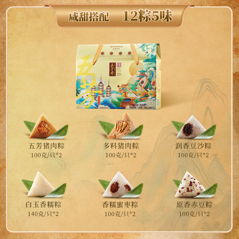 【所有女生直播间】五芳斋粽子礼盒祥韵蛋黄肉粽豆沙嘉兴端午团购 【12粽5味1240克】五芳祥韵