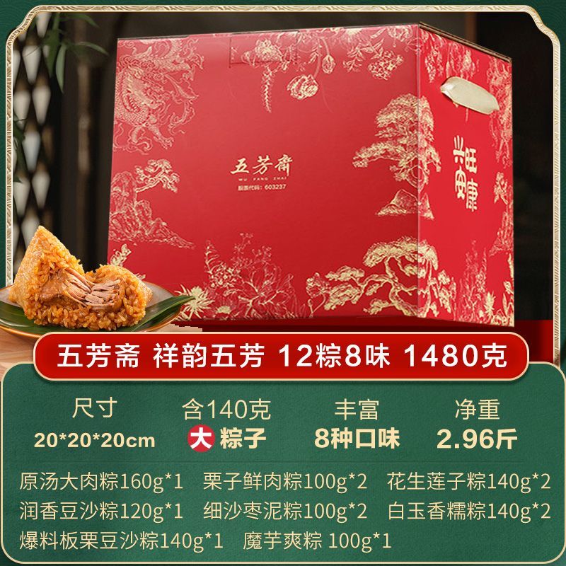 五芳斋粽子肉粽礼盒装嘉兴特产蛋黄鲜肉大肉棕子端午节送礼品团购 祥韵五芳-12粽8味-1480克