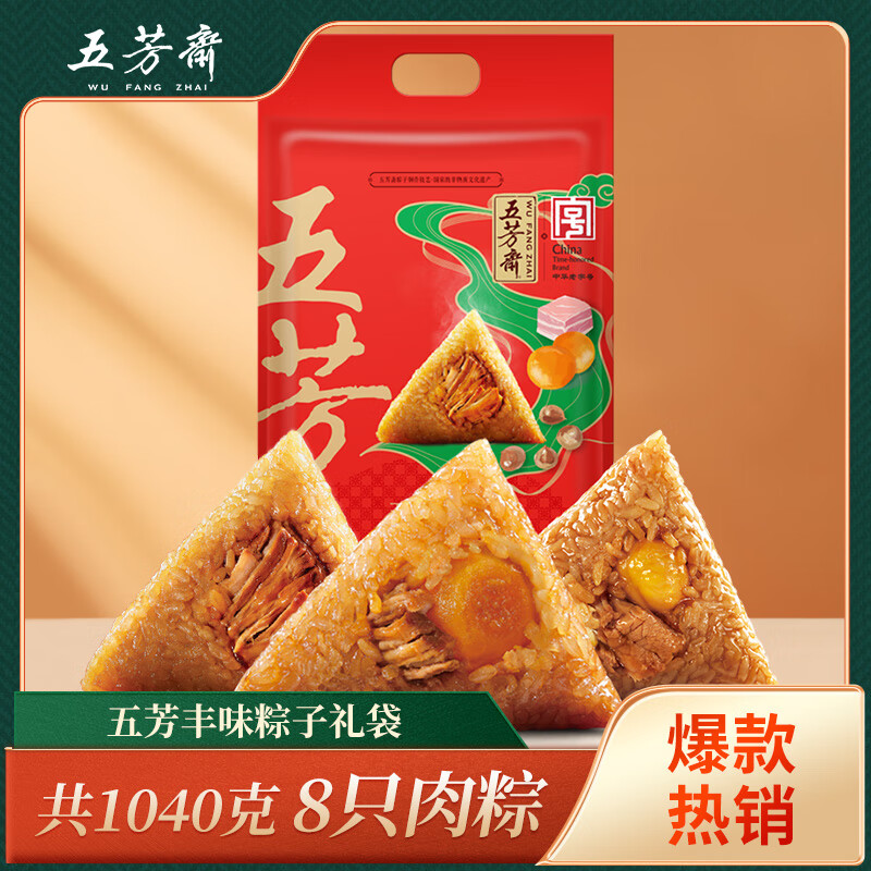 五芳斋 中华老字号 嘉兴特产粽子袋装 端午节团购量贩装肉粽早餐棕礼袋 五芳丰味1040克(全8只肉粽)