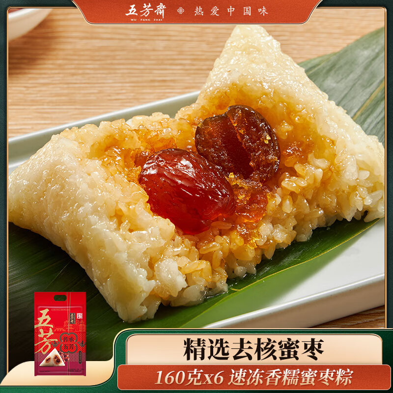 五芳斋 速冻香糯蜜枣粽 140g*6只 嘉兴粽子甜粽端午粽子早餐食品