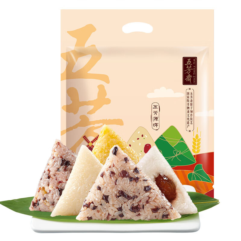 五芳斋源辉速冻粽子礼袋 100g*10只 蜜枣豆沙全素粽子礼包