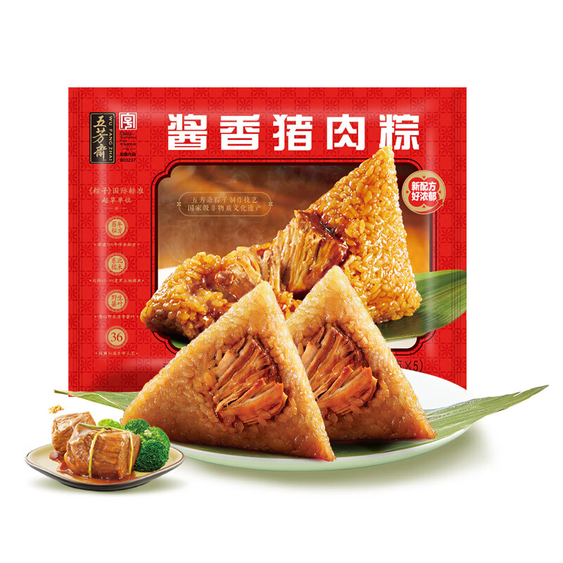 五芳斋速冻酱香猪肉粽 100g*5只 嘉兴酱香肉粽端午粽子早餐食品