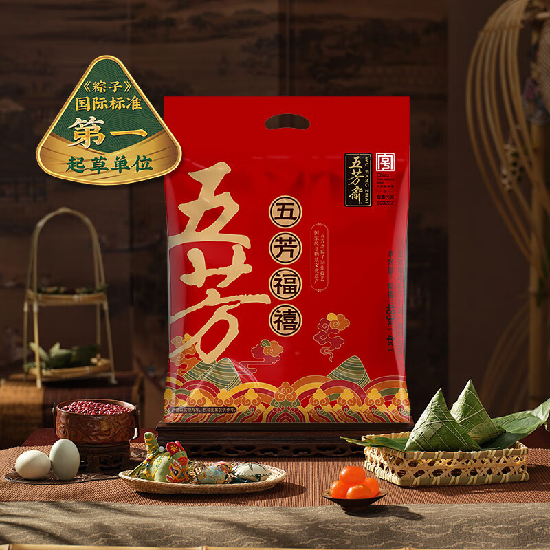 五芳斋 中华老字号 嘉兴特产粽子袋装 端午节团购量贩装肉粽早餐棕礼袋 五芳福禧120克*4(2肉2甜)