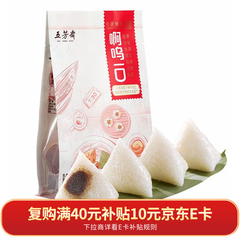 五芳斋粽子 白糯红豆细沙粽50克*4只 中华老字号 端午嘉兴粽子特产