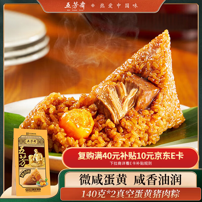 五芳斋粽子中华老字号 蛋黄猪肉粽140克*2只 嘉兴特产真空包装早餐