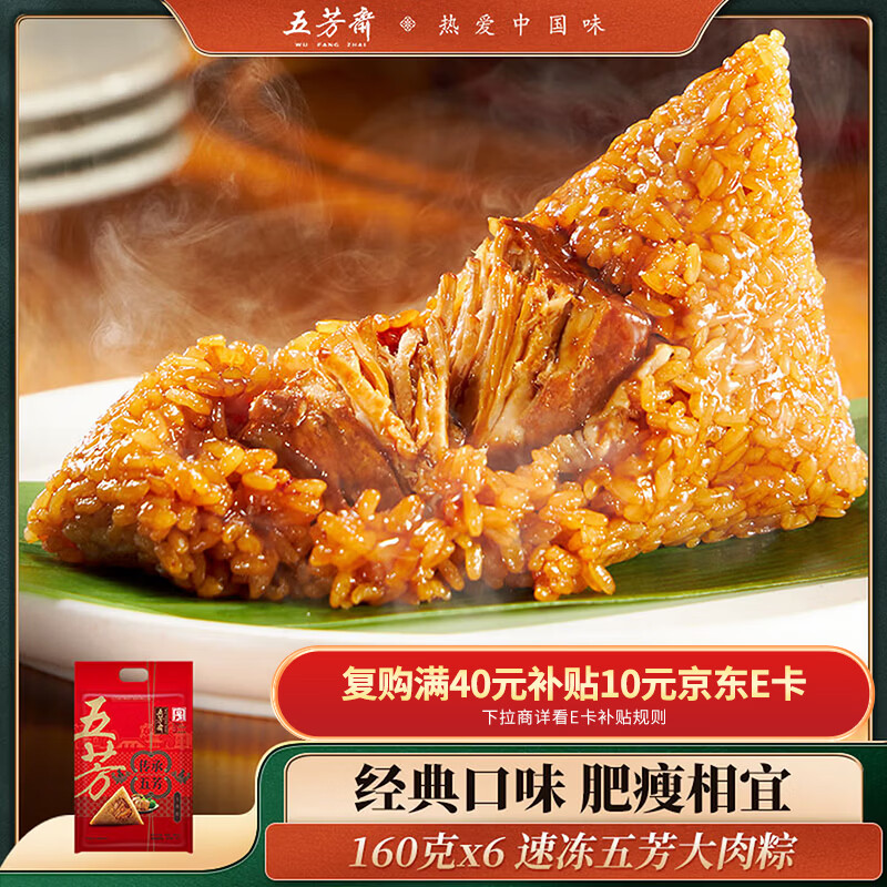 五芳斋 速冻大肉粽 160g*6只 嘉兴粽子大肉粽端午粽子早餐食品